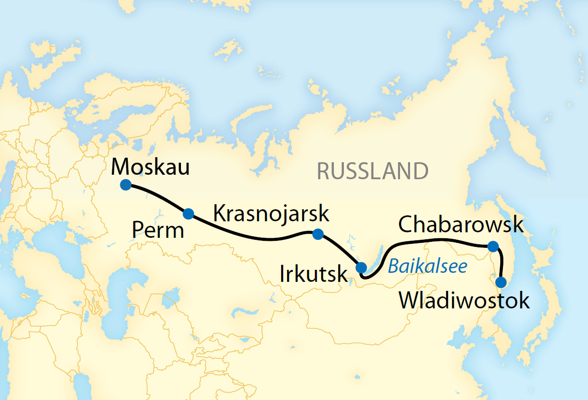 17-tägige Individualreise im Transsib-Linienzug von Moskau nach Wladiwostok
