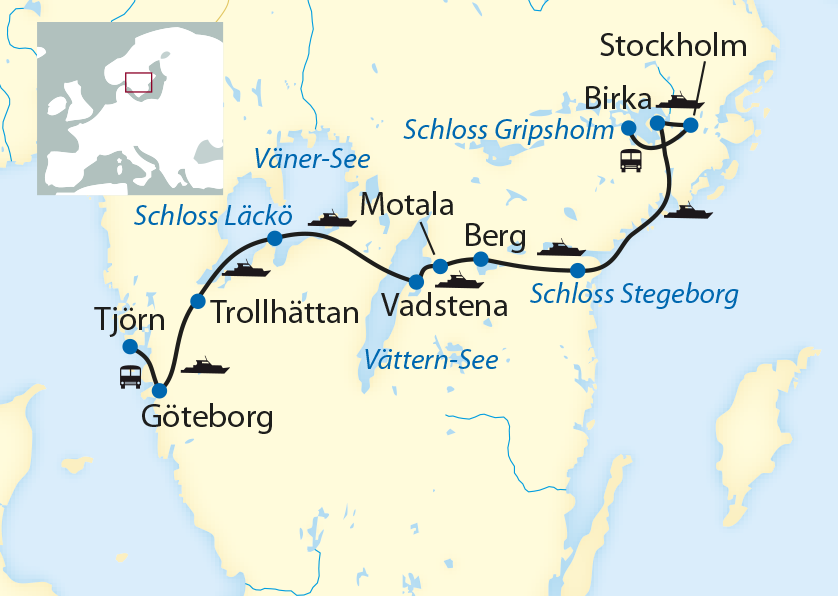Flusskreuzfahrten an Bord kleiner Boutique-Schiffe werden weltweit immer beliebter – in Schweden kennt man das wunderbar langsame und entspannte Reisen schon seit fast 150 Jahren. Ein Wasserweg durch Schären, Kanäle und Seen zieht sich quer durch das Land vom Kattegat bis zur Ostsee: der Göta-Kanal. An Bord eines der historischen Kanalschiffe tauchen Sie hier in eine nostalgische Art des Reisens ein und geniessen Entschleunigung in ihrer schönsten Form. Seit über 10 Jahren chartern wir die liebevoll restaurierte MS Diana jedes Jahr wieder exklusiv für Sie. Es erwartet Sie ein echter Reiseklassiker, den wir um Ausflüge rund um Göteborg und Stockholm und zum Tucholsky-Schloss Gripsholm bereichern.