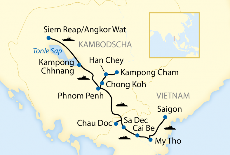 Erleben Sie die sonnige Exotik Vietnams und Kambodschas bei einer Flusskreuzfahrt an Bord der neuen, exklusiv für Sie gecharterten Mekong Discovery! Geniessen Sie atemberaubende Flusslandschaften, farbenfrohe Märkte und Einblicke in das Leben der vietnamesischen und kambodschanischen Bevölkerung. Auf der gesamten Reise logieren Sie an Bord Ihres komfortablen und stilvollen Boutique-Schiffs.