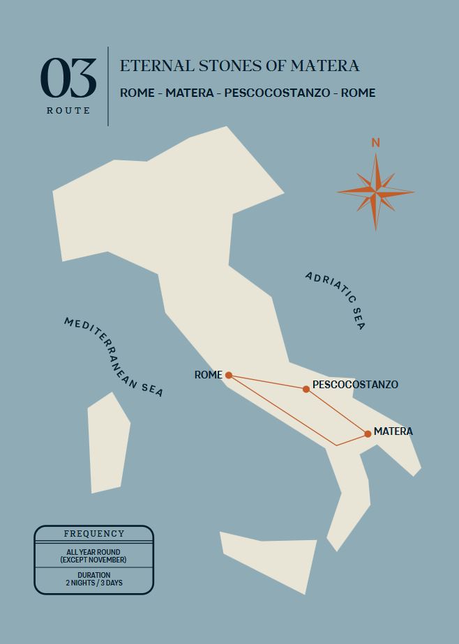 Ab Rom beginnt die Entdeckung der Pracht von Matera und seiner UNESCO-Welterbestätten.