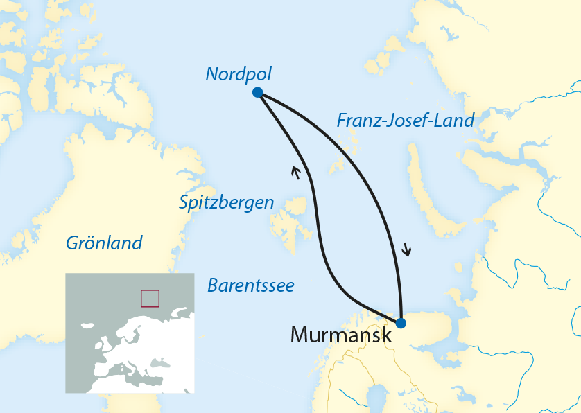 Über eine Distanz von mehr als zwanzig Breitengraden durch die Barentssee bis zum Nordpol zu fahren, ist eine der ungewöhnlichsten Reisen, die Sie unternehmen können. Mit dem leistungsstärksten Eisbrecher der Welt, IB 50 Let Pobedy (50 Years of Victory), fahren Sie etwa 1.000 km durch das Packeis ins Reich des Königs der Arktis, des Eisbären. Folgen Sie sicher und komfortabel den Spuren berühmter Polar-Forscher und entdecken Sie zauberhafte Landschaftspanoramen aus Wasser und Eis im ewigen Schein der Polarsonne!
