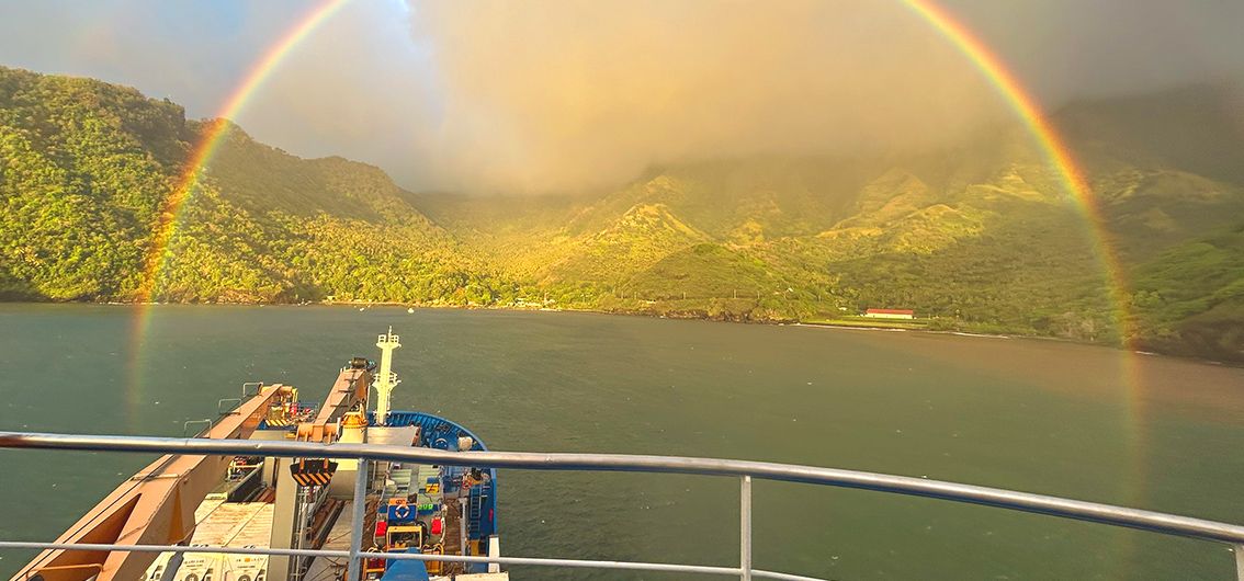 Am Morgen gehen Sie erneut an Bord der Aranui 5, dann heisst es: Leinen los! Ihre Postschiff-Reise mit Kurs auf die Austral-Inseln beginnt. (FMA)