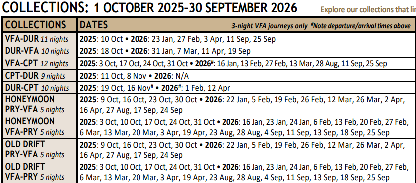 Mit Rovos Collections wird jede Reise zu einem umfassenden, luxuriösen Erlebnis, das weit über die klassische Zugfahrt hinausgeht und unvergessliche Erinnerungen schafft.