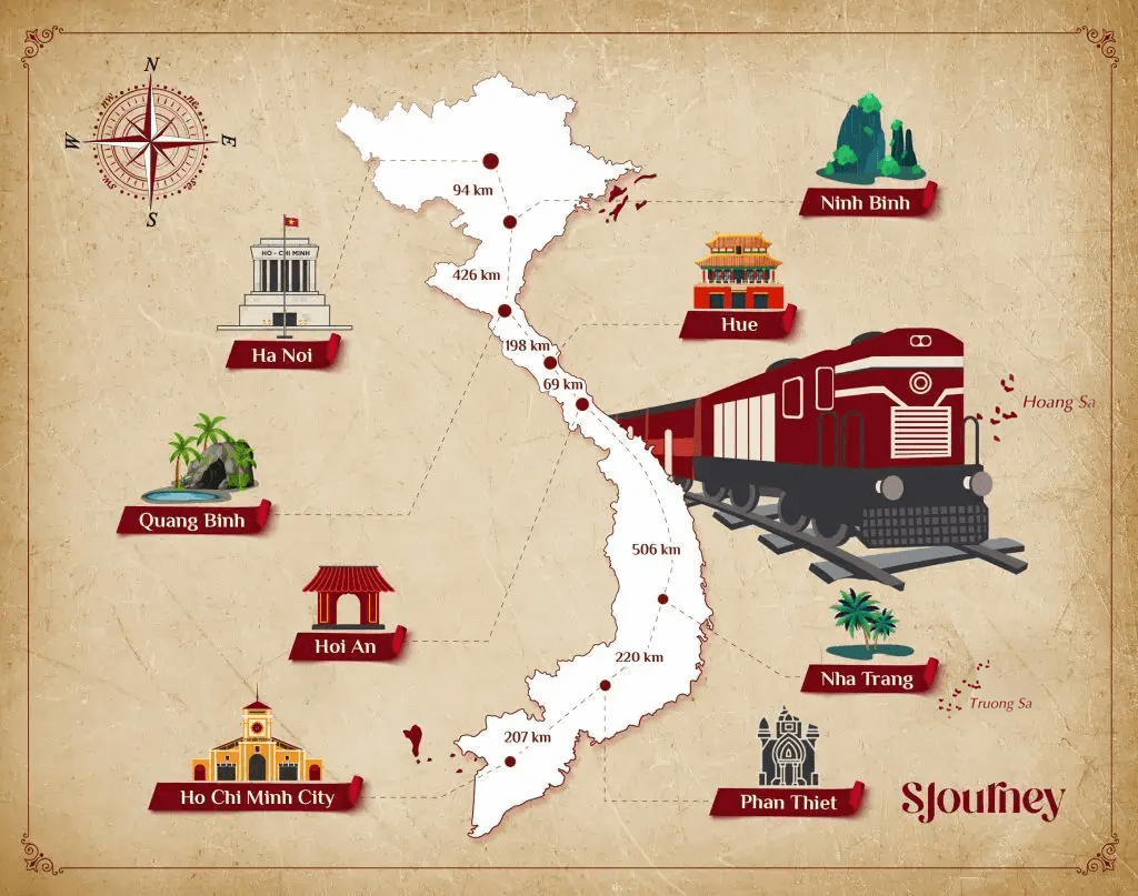 Diese exklusive Reise auf Schienen entführt Sie in eine andere Welt – voller landschaftlicher Wunder, kultureller Schätze und eleganter Erlebnisse. An Bord des luxuriösen SJourney, eines meisterhaft gestalteten Zuges im Stil zeitloser vietnamesischer Handwerkskunst, gleiten Sie vom historischen Hanoi bis ins vibrierende Ho-Chi-Minh-Stadt.