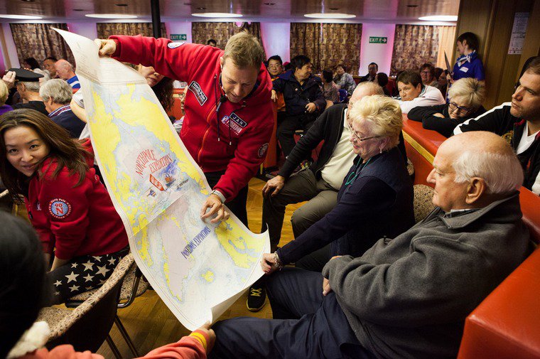 Wir trauen uns beinahe nicht, von “ihr” zu sprechen, wenn wir über die 50 Years of Victory reden – denn sehr „ladylike“ ist dieses Schiff nicht. Aber Eleganz spielt ja auch keine Rolle, wenn es darum geht, Sie mit dem richtigen Schiff zum nördlichsten Punkt der Erde zu bringen. Geeignet ist wohl eher der stärkste Eisbrecher der Welt, ausgestattet mit 75.000 PS und der Fähigkeit, drei Meter dicke und Jahre alte Eisschichten zu durchbrechen. Eines ist sicher: Nach ein paar Tagen an Bord werden Sie ein Teil ihrer (oder seiner?) Power, wenn Sie sich gemeinsam den Weg durch das arktische Eis zur Position 90° Nord bahnen.Die 50 Years of Victory ist kein Touristenschiff.