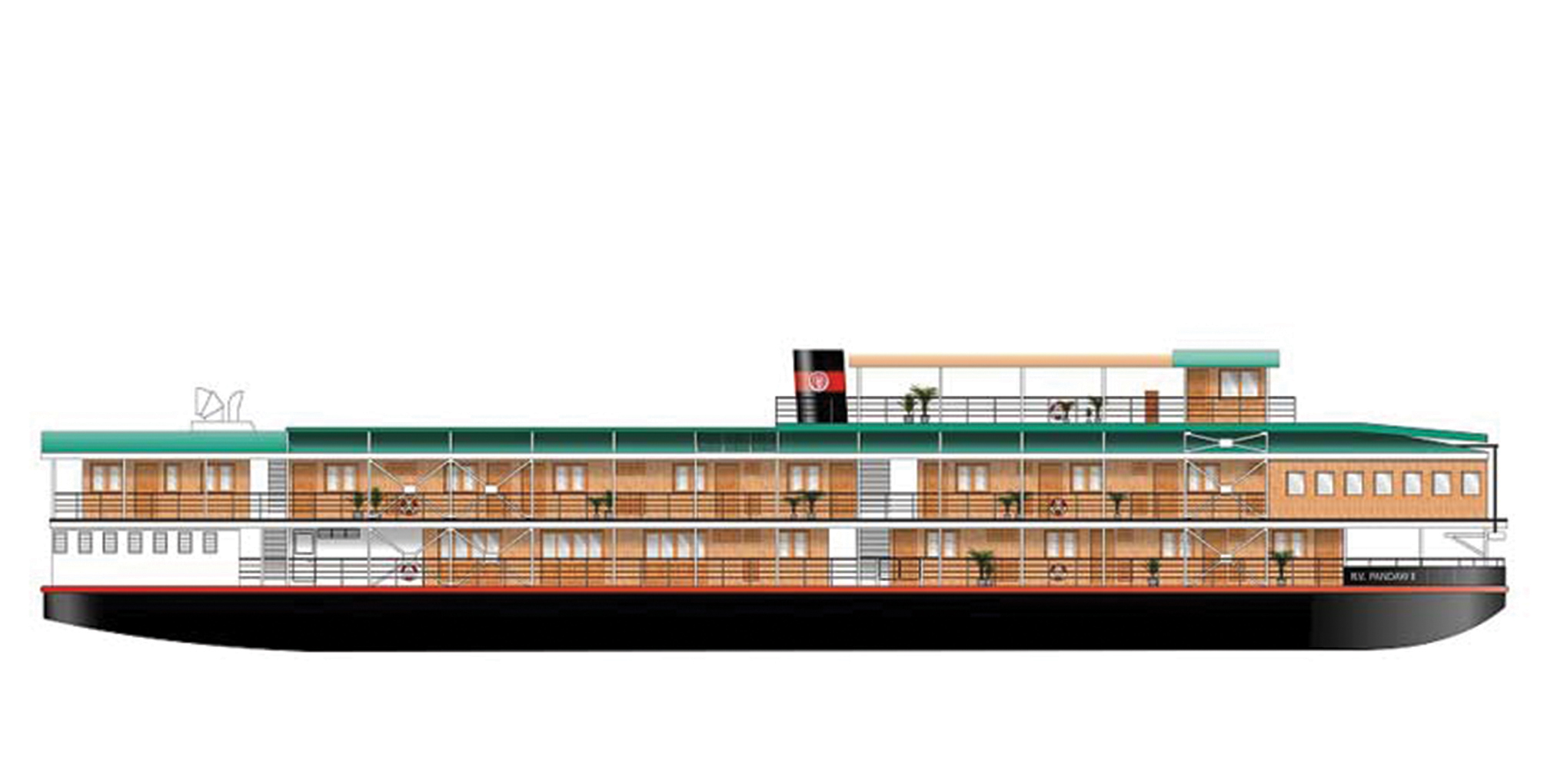 Pandaw II was our first ever new build back in 2001. Though our oldest ship she is still young in river terms – her prototype the old Pandaw is now over sixty years old and many ships in this fresh water environment are at least 100 years old. She was built in Rangoon at the Dawbone dockyard, then belonging to the Marine Department. In those days there was no electricity and numerous generators surrounded the growing hull powering the welder’s torches. Timber mills were rare too and great tree trunks would be delivered to the dockside and be cut into planks on the spot. The result was magnificent and still is.