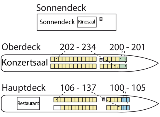 Die MS Michail Svetlov bietet 59 geräumige Doppelkabinen mit jeweils 10,7 m² und 6 Einzelkabinen mit jeweils 6,8 m². Alle Kabinen sind gemütlich eingerichtet und mit Dusche/WC ausgestattet. In den 2 Suiten, die 19,8 m² groß sind, finden Sie weitere Annehmlichkeiten wie eine Minibar und ein TV-Gerät.